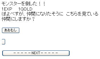 「--NEXT--」を押すと、仲間にせずに旅を続けます。
